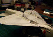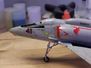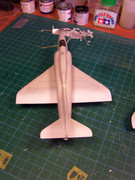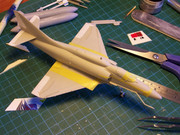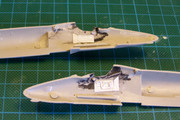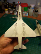 Η γράμμωση του μοντέλου χαράχτηκε, στο κόκπιτ προστέθηκε όση λεπτομέρεια μπορούσα να βάλω, η καλύπτρα τρίφτηκε και γυαλίστηκε (ήταν θολωμένη από κόλες) και προστέθηκε κάποια λεπτομέρει στις φωλιές του ΣΠ. Γενικά έκανα πάνω κάτω τα ίδια με το Skyhawk της Italeri, αφού ούτως ή άλλως τα κιτ δουλεύονταν παράλληλα.