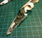 Οι πτέρυγες και η άτρακτος τρίφτηκαν για να φύγει η ανάγλυφη γράμμωση που υπήρχε αρχικά, χαράχτηκαν, στοκαρίστηκαν και προετοιμάστηκαν για την τελική συναρμολόγηση...