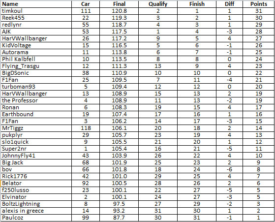 8. F1fan (25) 6.167 Well-balanced car with exceptional bursts of acceleration.