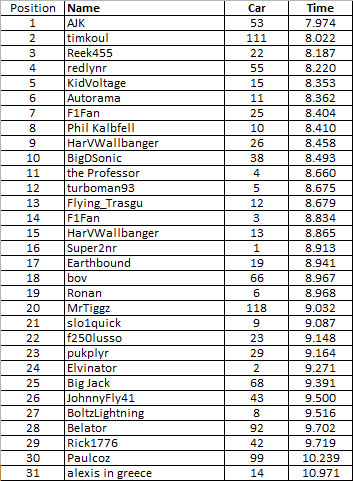 31. PaulCoz 6.932 Seemed faster than lap times revealed.