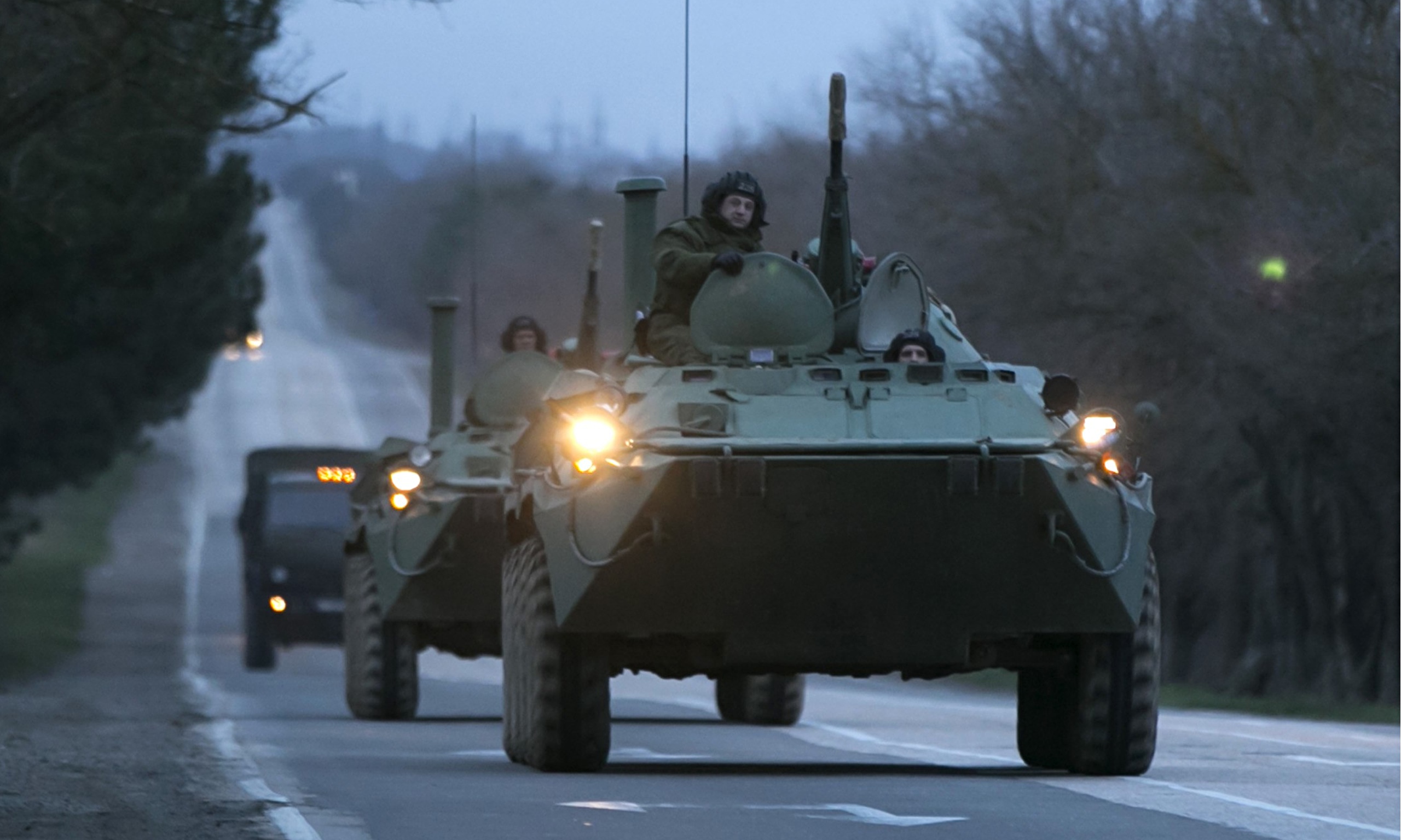 Αξιοσημείωτη λεπτομέρεια είναι επίσης και τα ρωσσικά χρώματα στον σωλήνα εισαγωγής αέρα για τον κινητήρα. Στη φωτογραφία 2 BTR φέρουν τα χρώματα και 2 όχι. Τέλος το προπορευόμενο όχημα δεν ξέρω από που πέρασε αλλά φαίνεται να έχει λάσπη ΚΑΙ στα καλύμματα του κινητήρα!