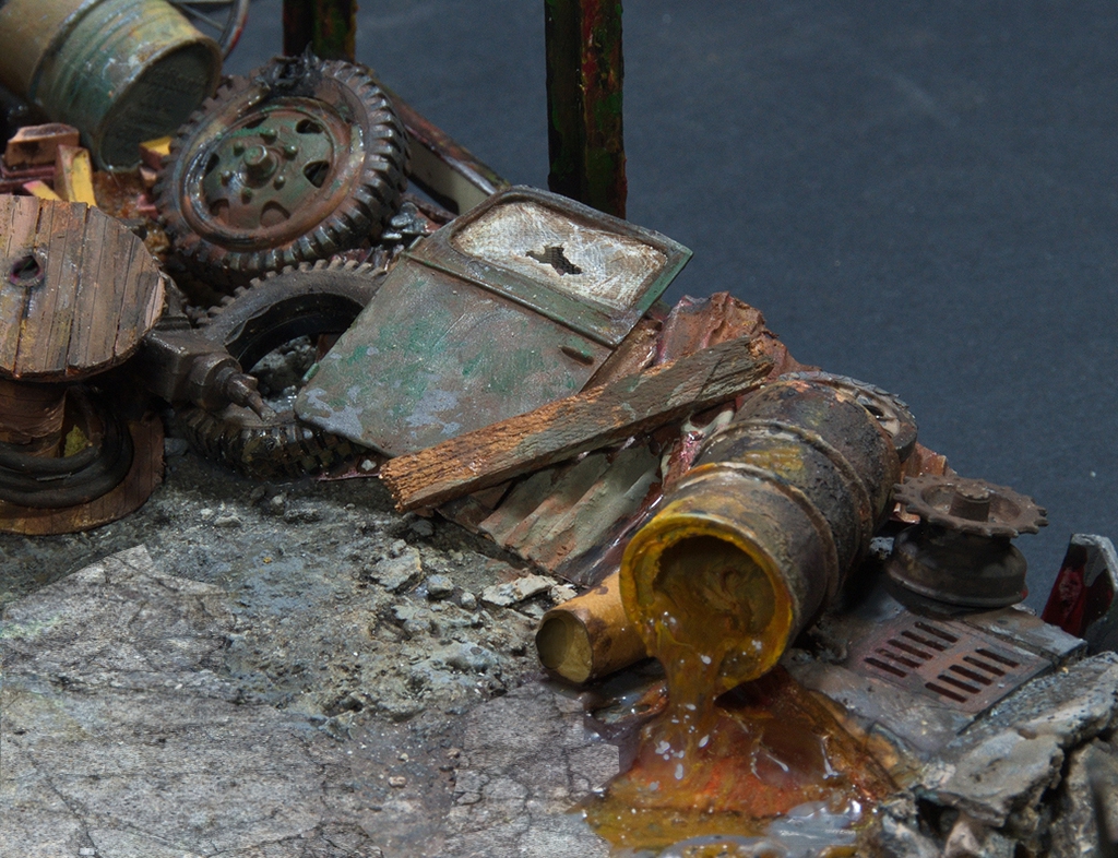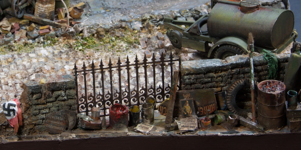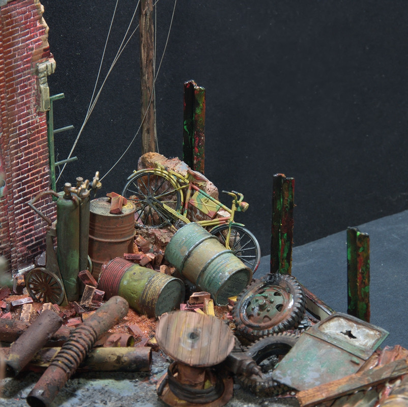 Κωστα, καποιος αλλος θα ελεγε ρε λιλα και φουξια βαρελια εβαλες?καποιες φορες ο ενιαιος χρωματισμος ειναι μαλλον ο σωστος σε στρατιωτικες σκηνες εγκαταλειψης σε κλιμακα και αποσταση,δηλαδη οταν γυρω εχει γκρεμιστει το συμπαν,η σκουρια και η σκονη κυριαρχουν