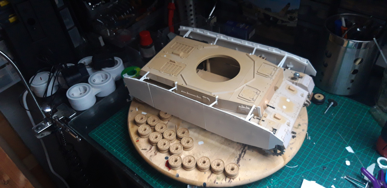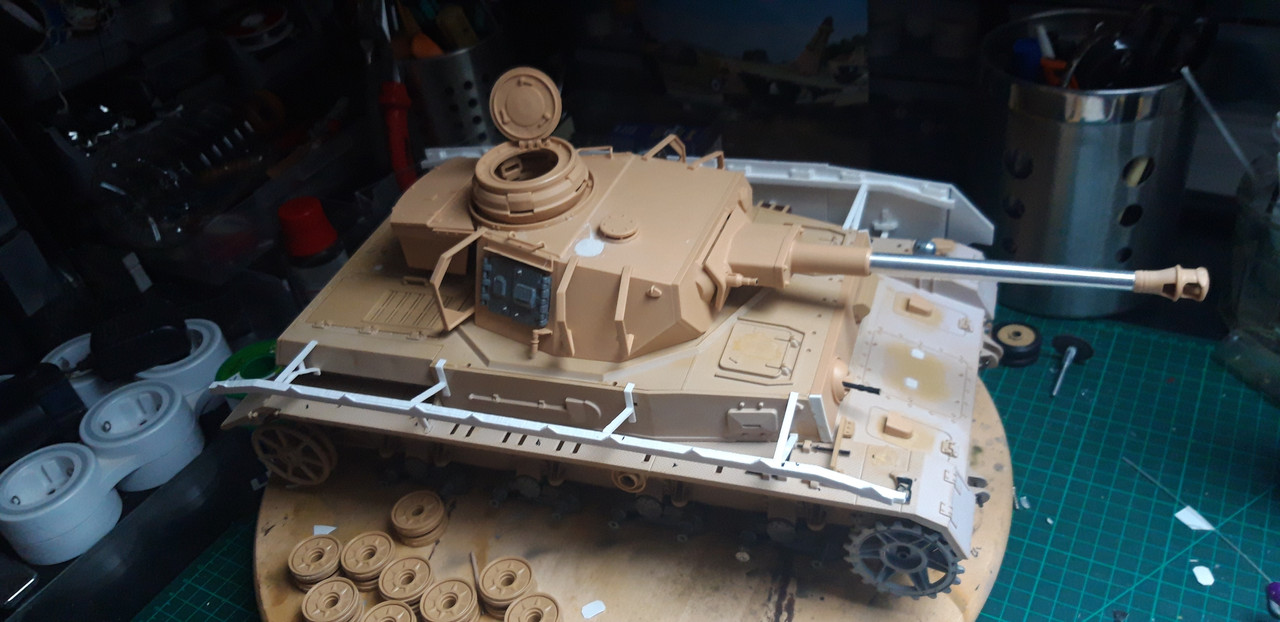 εδω και αρκετα χρονια ειχα αρχισει να μαζευω υλικο για να κατασκευασω το Pz IV ausf H στην 1:16. Για τον σκοπο αυτον εφοδιαστηκα με το κατω μερος του Pz IV της Χενγκ Λονγκ και μερικα κομματια του Pz IV της Ταμιγια το οποιο ολοκληρο ειναι απληρωτο.... Εδω λοιπον βρηκα (τοτε) τον πυργο και τους εδαφικους σε καλη τιμη. διαγορα αλλα κοματια οπως το κανονι αναρτησεις, ερπιστριες κλπ βρεθηκαν σε μεταλλικα κομματια. Το Pz IV ausf J της Ταμιγια δεινει ποδιες μονο για τον πυργο και τις κυριες ποδιες τις εφτιαξα με την βοηθεια ενος καλου φιλου (Christian Ludwig).