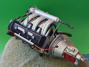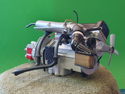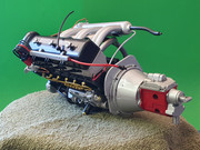 Δυσκολίες προέκυψαν στην απαλοιφή των ανωμαλιών (κακή συναρμογή των δύο μισών του κιβωτίου) μέχρι να έρθει και να κάτσει τελείως στην επιφάνεια επαφής. Μετά και την προσθήκη του καπακιού των βαλβίδων και των μπουζοκαλωδίων (εδώ αντικαταστάθηκε με κόκκινο το καλώδιο που πάει από τον πολλαπλασιαστή στο ντιστριμπιτέρ), ο κινητήρας παρουσιάζεται έτσι: