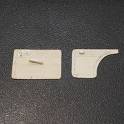 Αφου εγινε και αυτό έφτιαξα το φωτακι της πινακίδας Αυτό που εδινε το κιτ ήταν πολύ μικρό και αφορουσε τα παλιότερα μοντέλα Κοπηκε ένα ημικυκλικό κομμάτι περιπου στις διαστασεις κολλήθηκε καλά στο καπό και εκεί του δόθηκε το τελικό σχήμα τρίβοντας το με ντουκόχαρτο Αφου αφέθηκε να στεγνωσει καλα καλα περάστηκε από την κατω μεριά ένα πολύ ψιλό φιλετακι πλαστικού