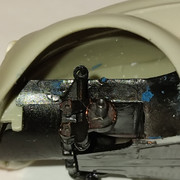 Στο εσωτερικό τέλος φτιάχτηκαν και κολλήθηκαν δυο χειρολαβές που βρίσκονται μεταξυ των μπροστινών πορτών και των πίσω παραθύρων που βαφτηκαν με ivory της Humbrol , και ένας καθρεφτης ευκολα από φυλλο πλαστικου και ένα συρματακι για να παρει το σωστόσχήμα και να κολληθεί στον ουρανό μεταξύ των δύο σκιαδίων Μετα από όλα αυτά η καρότσα αφέθηκε για να ασχοληθώ με τα τελειώματα στο σασί