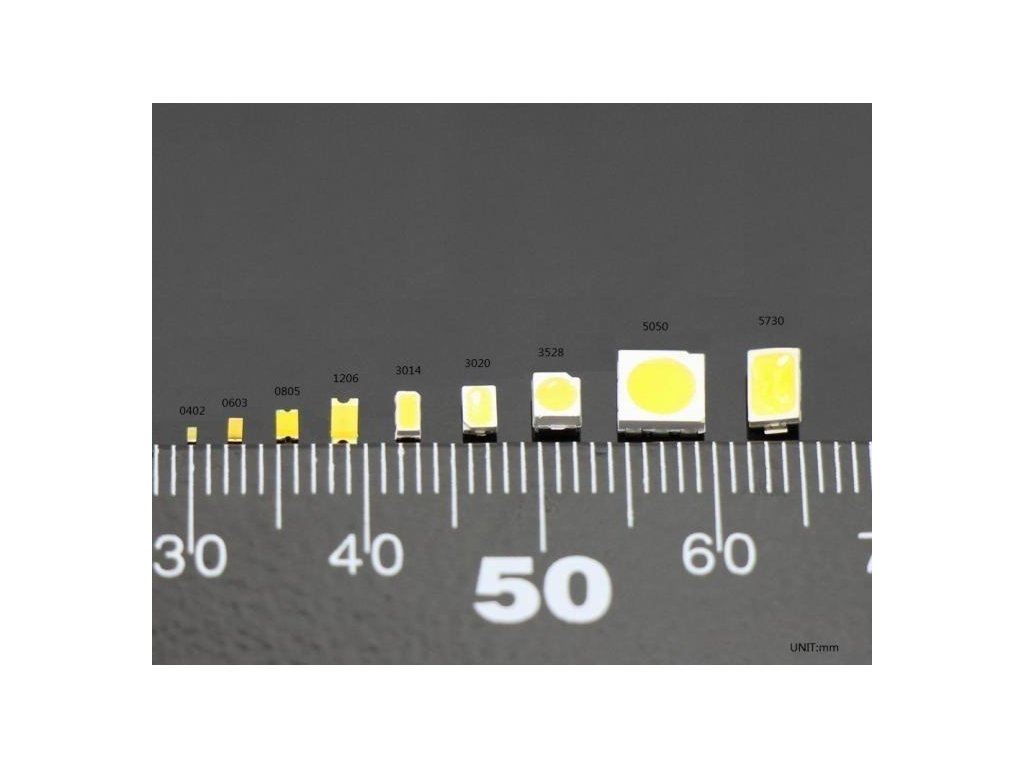 Τα SMD LED είναι μια κατηγορία που και από το όνομα τους Surface Mount Device (της λεγόμενης επιφανειακής στήριξης) θα μας είναι πολύ χρήσιμα. Αυτό γιατί είναι διαθέσιμα σε πολύ μικρά μεγέθη ξεκινώντας από το μικρότερο που υπάρχει στην αγορά το 0201 (0.65 mm x 0.35 mm x 0.20 mm (L x W x H)) μέχρι αρκετά εκατοστά.