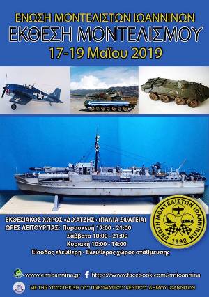 Η Ένωση Μοντελιστών Ιωαννίνων διοργανώνει ΕΚΘΕΣΗ ΜΟΝΤΕΛΙΣΜΟΥ από τις 17 Μαΐου έως και τις 19 Μαΐου 2019 στον φιλόξενο χώρο του φουαγιέ του πολιτιστικού πολυχώρου "Δημήτρης Χατζής" (παλαιά σφαγεία), στην Οδό Μακαρίου, τον οποίο ευγενικά παραχωρεί ο Δήμος Ιωαννιτών.