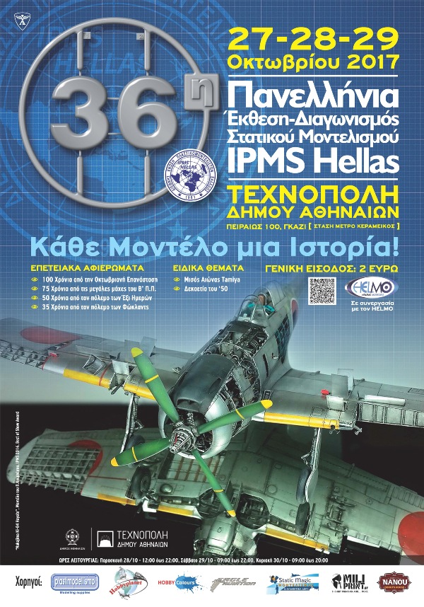 Η 36η Ετήσια Έκθεση - Διαγωνισμός Μοντελισμού της IPMS Ελλάδος θα πραγματοποιηθεί 27 έως 29 Οκτωβρίου στην Τεχνόπολις του Δήμου Αθηναίων.