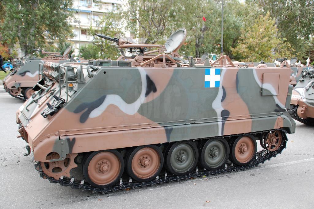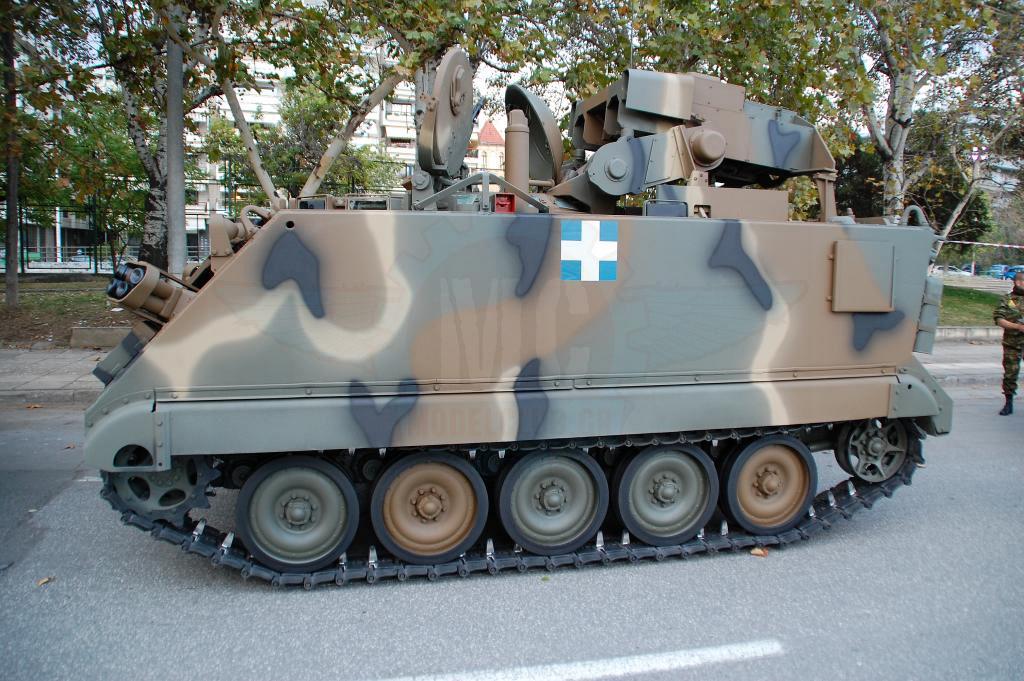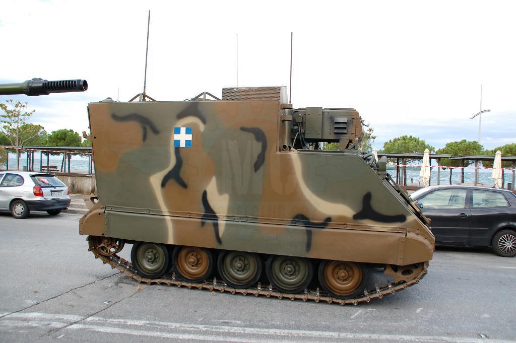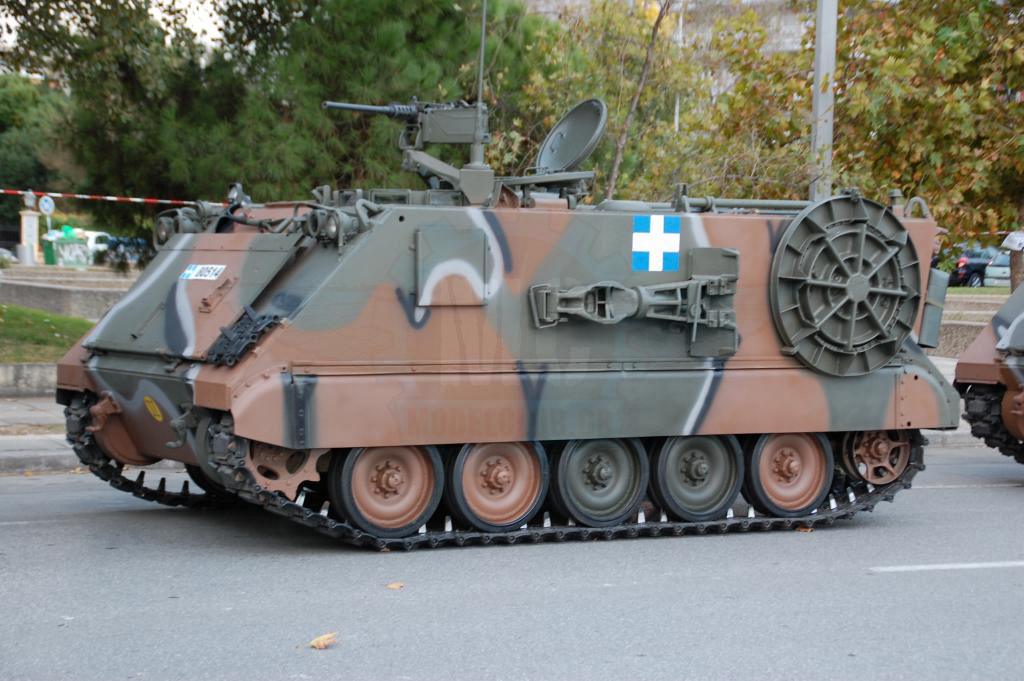 Στην παρέλαση της Θεσσαλονίκης όμως αυτό που ίσως αξίζει περισσότερο είναι τα εφεδρικά οχήματα και αυτά που υποστηρίζουν την παρέλαση. Οι αρματοφορείς Steyr & Oshkosh είναι πάντα παρόντες και επιβλητικοί. Οι πρώτοι βαμμένοι με την «Νέα» Ελληνική τετράχρωμη παραλλαγή που μοιάζει πολύ με αυτήν τον Leopard 2HEL. Οι δεύτεροι διατηρούν το μονόχρωμο πράσινο ακόμη και μετά την εργοστασιακή ανακατασκευή που τους έγινε στις εγκαταστάσεις της ΕΛΒΟ.