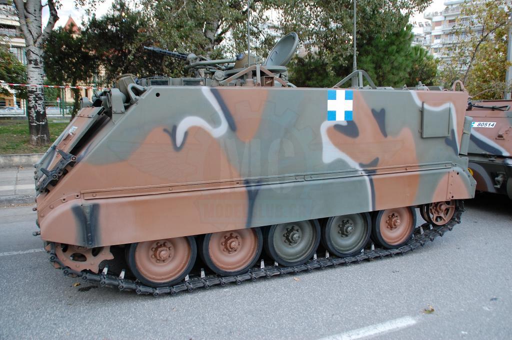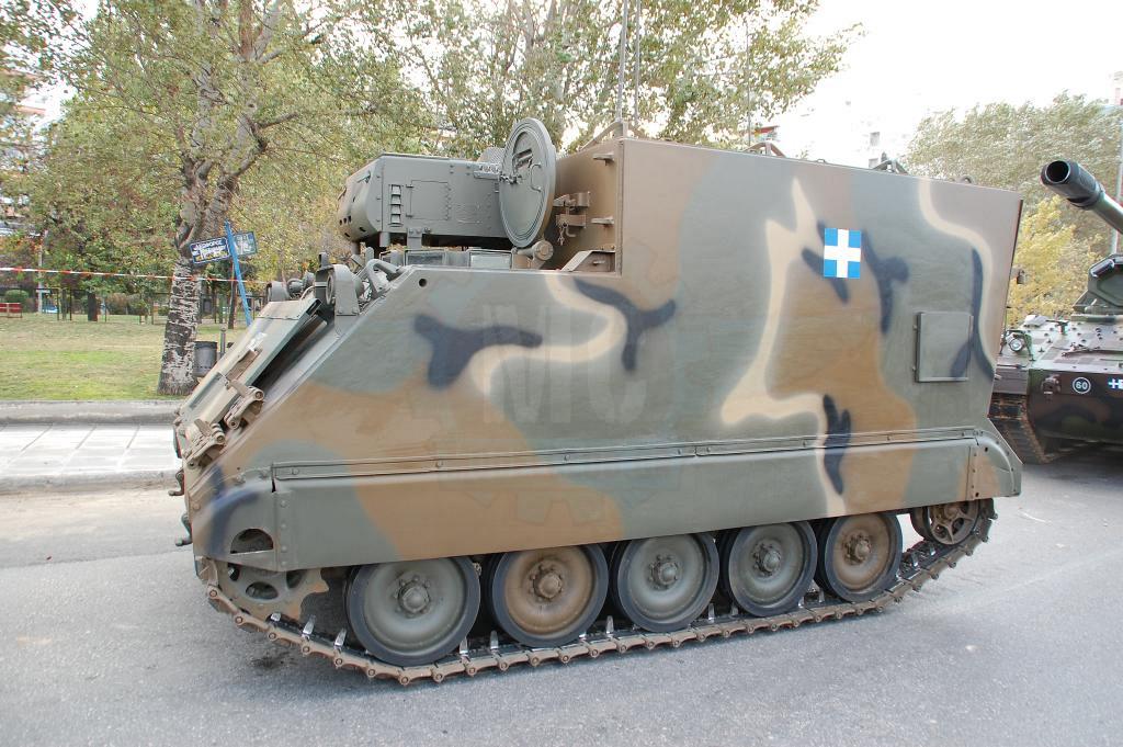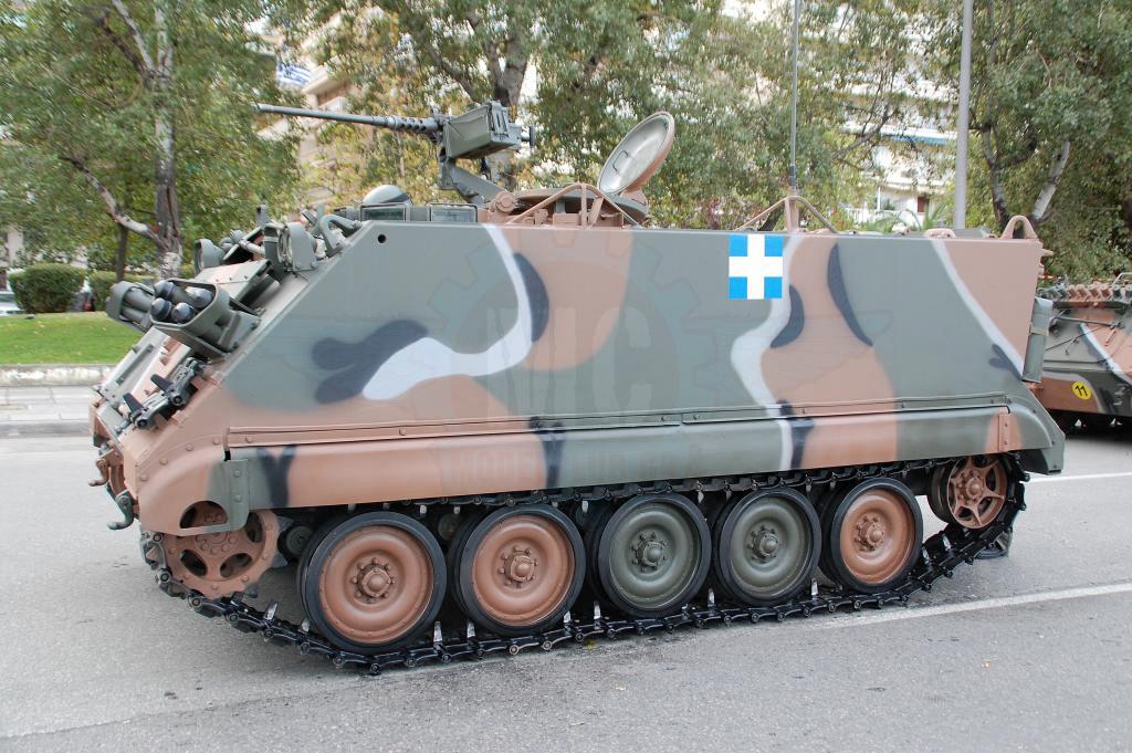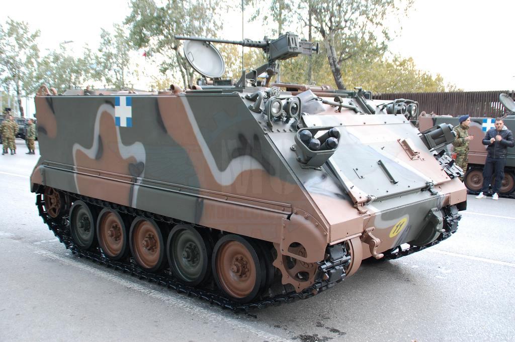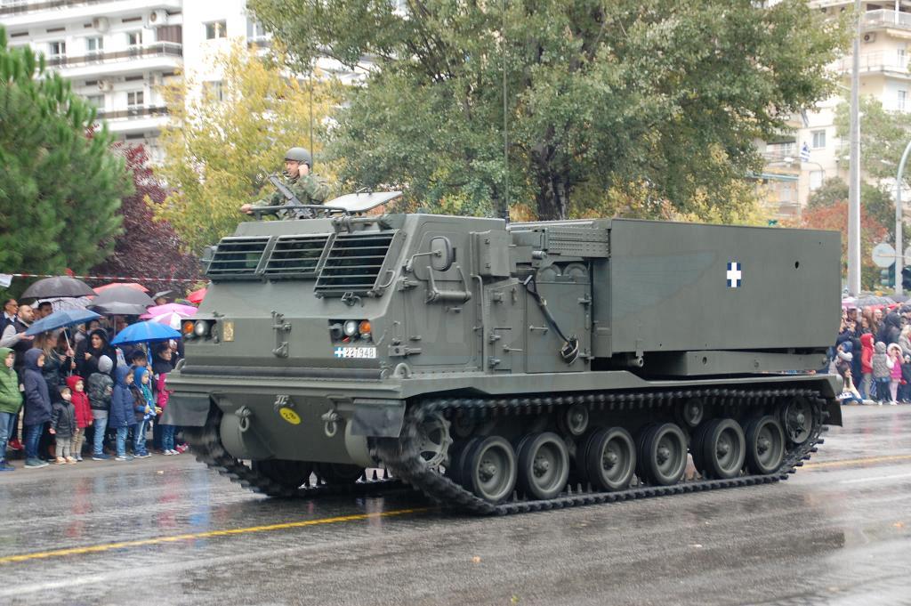 Στην παρέλαση της Θεσσαλονίκης όμως αυτό που ίσως αξίζει περισσότερο είναι τα εφεδρικά οχήματα και αυτά που υποστηρίζουν την παρέλαση. Οι αρματοφορείς Steyr & Oshkosh είναι πάντα παρόντες και επιβλητικοί. Οι πρώτοι βαμμένοι με την «Νέα» Ελληνική τετράχρωμη παραλλαγή που μοιάζει πολύ με αυτήν τον Leopard 2HEL. Οι δεύτεροι διατηρούν το μονόχρωμο πράσινο ακόμη και μετά την εργοστασιακή ανακατασκευή που τους έγινε στις εγκαταστάσεις της ΕΛΒΟ.