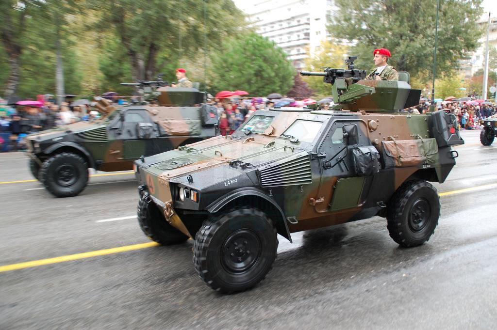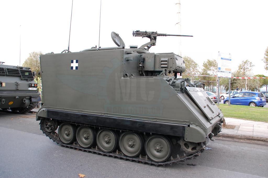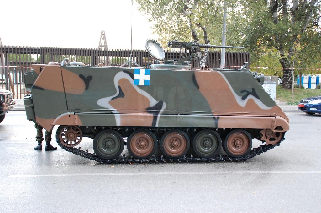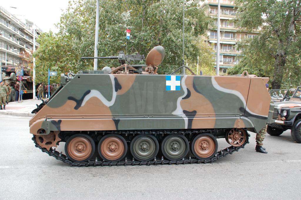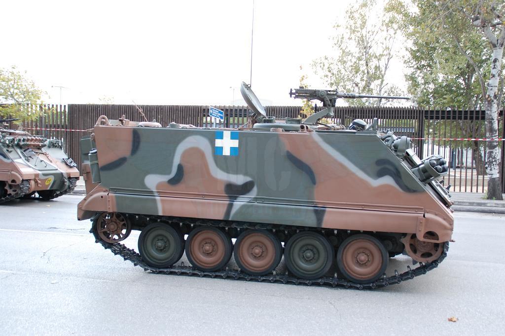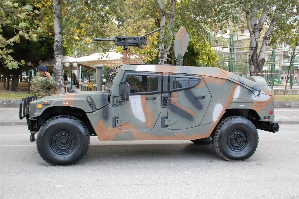 Στην αρχή της παράταξης το γνωστό πλέον ΤΟΜΠ Μ113Α2 με τις οπίσθιες εξωτερικές δεξαμενές καυσίμου που μετρά την 3η του συνεχή χρονιά στην παρέλαση. Ακολουθούν παπάκια πρώην Γερμανικά και αμερικάνικα με τους 4πλους εκτοξευτές καπνογόνων τοποθετημένους. Τα οχήματα Hummer θωρακισμένα και μη μαζί με τα μακριά VBL ακολουθούν τα παπάκια. Φέτος τα αθωράκιστα Hummer M1025 φορείς Milan βάφτηκαν με την Ελληνική 4χρωμη παραλλαγή και ήταν ιδιαίτερα εντυπωσιακά.