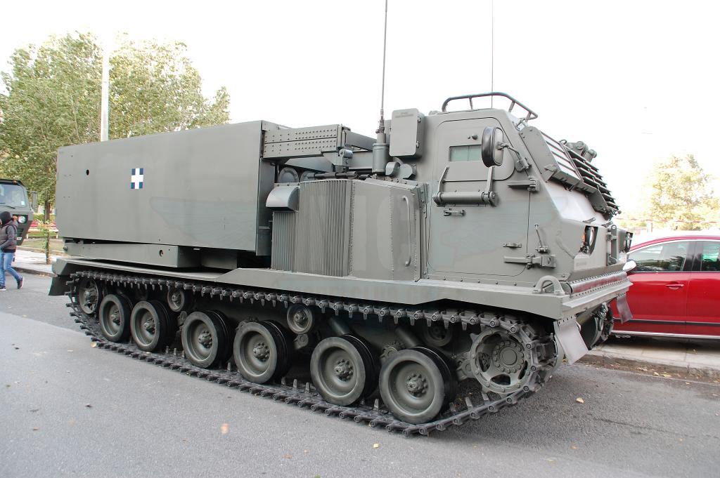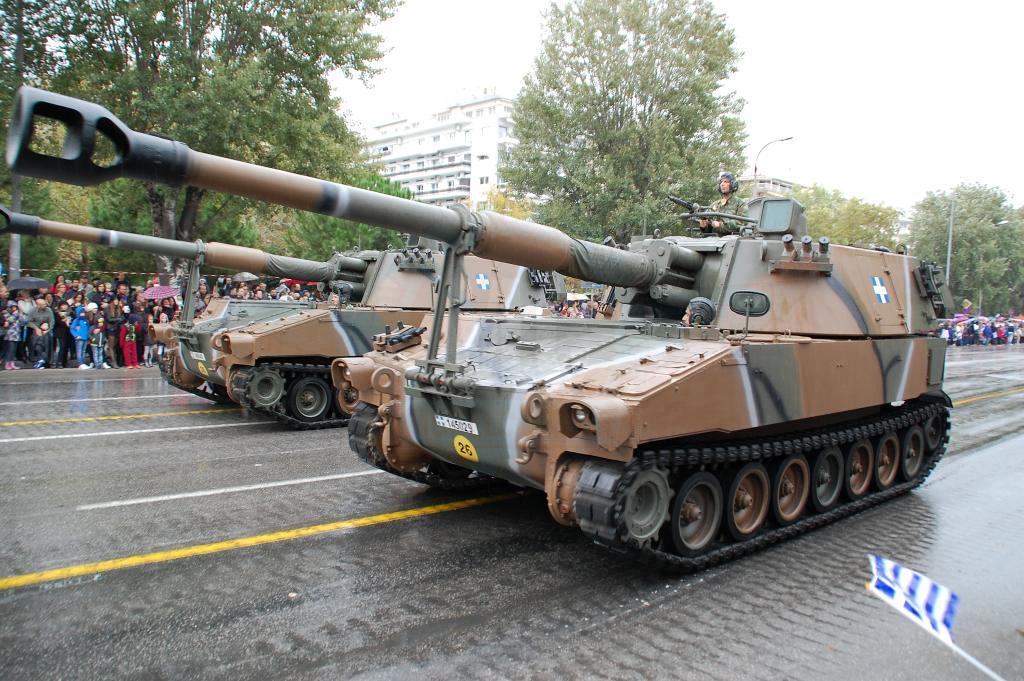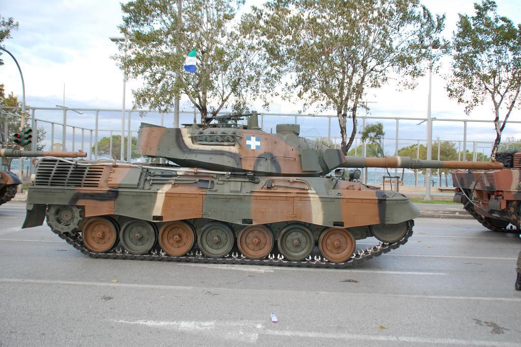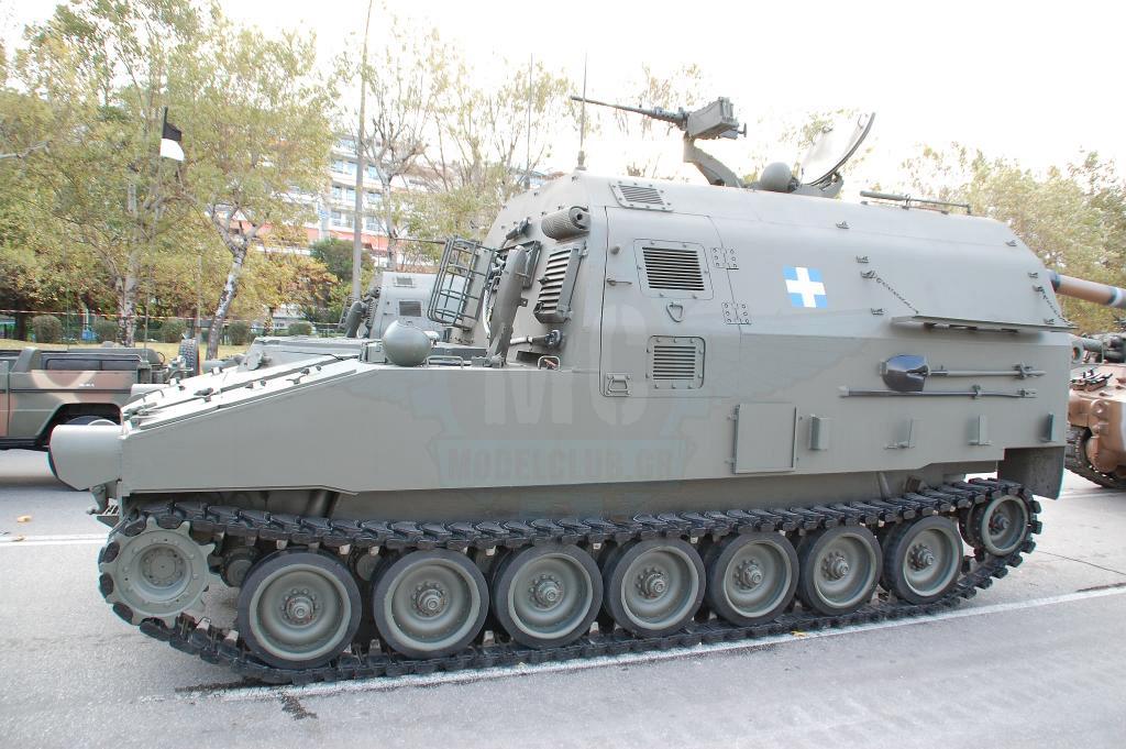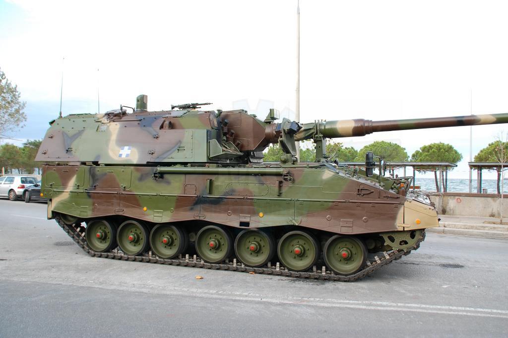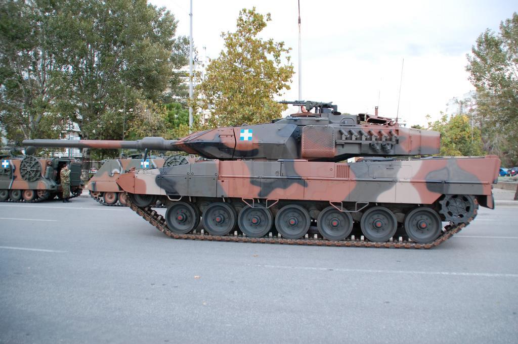 Φτάνουμε στα άρματα, όπου τα Leopard 2HEL παραμένουν εντυπωσιακά και τα Leopard 1A5 έχουν τελικά πολύ χαμηλό προφίλ συγκριτικά με τα άρματα της σειράς Μ. Στο πυροβολικό, αυτό που ξεχώρισε φέτος ήταν ότι πιθανότατα για 1η φορά από την ένταξή τους στον Ε.Σ. οι ΠΕΠ MLRS ήταν φρεσκοβαμμένοι και δεν παρουσίαζαν φθορές στο χρώμα τους όπως σε παλαιότερες παρελάσεις.Στις διαβιβάσεις, τα φορτηγά φορείς των ΜΕΑ Sperwer ήταν 2 τύπων, ΜΑΝ & Steyr με εμφανείς διαφορές στην καμπίνα οδήγησης και για 2η συνεχή χρονιά παρήλασαν οχήματα Hummer Μ1118GR εφοδιασμένα με MARGOT & BOR-A.