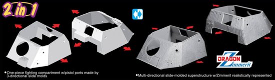 Η Dragon, κυκλοφόρησε το νέο αυτό κιτ, παρέχοντας όλα τα απαραίτητα κομμάτια για την αναπαράσταση ενός άρματος, τόσο με όσο και χωρίς Zimmerit. Αυτό σημαίνει ότι το κιτ περιλαμβάνει δύο πάνω και δυο κάτω τμήματα του πήγματος, δύο υπερκατασκευές και δύο πίσω θώρακες με και χωρίς το zimmerit. Επίσης, πολλά μικρά κομμάτια της υπερκατασκευής και του πήγματος έρχονται διπλά, με ή χωρίς την επίστρωση.