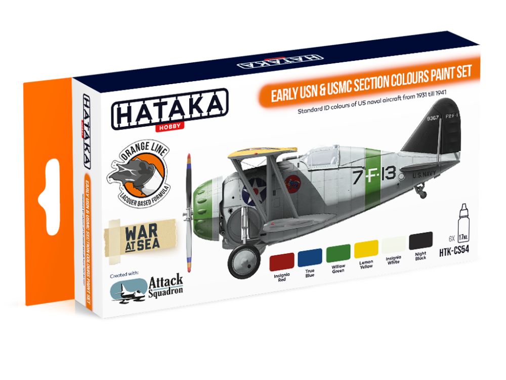 HTK-CS54 Early USN & USMC Section Colours paint set, στην πορτοκαλί σειρά με χρώματα laquer για χρήση με τον αερογράφο. Το σετ συνοδεύεται από φυλλάδιο που εξηγεί το σύστημα κωδικοποίησης των Μοιρών του αμερικανικού Πολεμικού Ναυτικού, βασισμένο στο παράδειγμα της VF-7 το 1940, εξοπλισμένης με αεροσκάφη Grumman F2F-1. Το σετ περιλαμβάνει τα χρώματα: