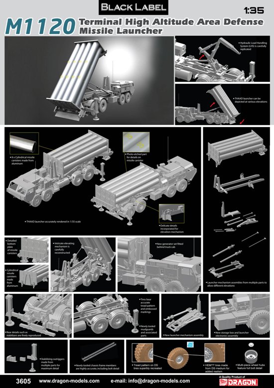 Η Trumpeter προσθέτει ένα ακόμη κιτ με βάση το (καλό) HEMTT που έχει ήδη βγάλει, με την κυκλοφορία του THAAD (01054). Σύμφωνα με την εταιρεία το κιτ αναμένεται στα ράφια στα μέσα Οκτώβρη, ενώ οι φωτογραφίες δείχνουν μια πληθώρα λεπτομερειών, τόσο στο όχημα, όσο και στο σύστημα των πυραύλων.