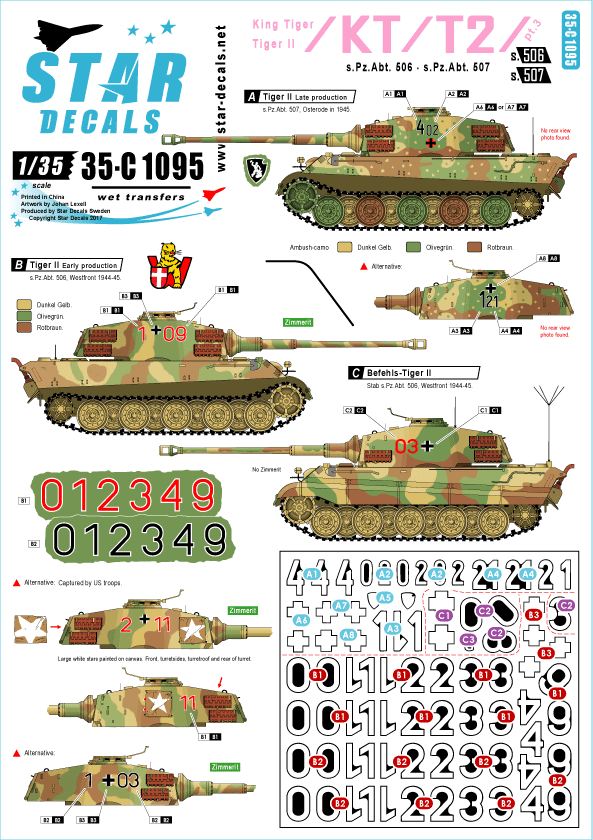 - 35-C1095 KT/T2 King Tiger/Tiger II #3. Σήματα για την s.SS.Pz.Abt.506 και 507. (Λεπτομέρειες εδώ)