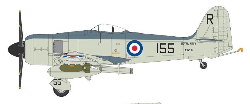Ένα Hawker Sea Fury FB.II, με κωδικό WJ236, 155/R της 801 Μοίρας Ναυτικής Συνεργασίας του Fleet Air Arm, όπως επιχειρούσε από το HMS Glory κατά την διάρκεια του πολέμου της Κορέας το 1952.