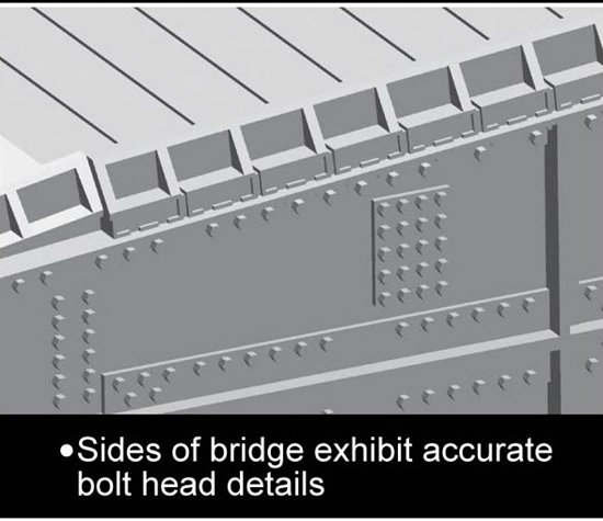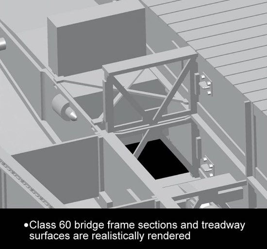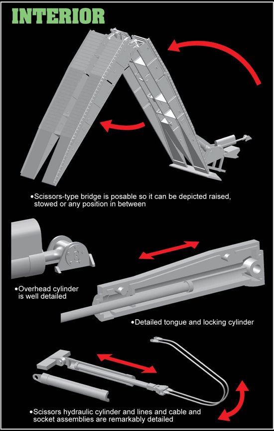 Μάλιστα το tooling του κιτ είναι τέτοιο που εκτός από αποθηκευμένη πάνω στο όχημα ή πλήρως αναπτυγμένη, η γέφυρα μπορεί να αποδοθεί σε οποιαδήποτε φάση της ανάπτυξης/ αναδίπλωσή της, καθώς όλα τα σχετικά κομμάτια και τμήματα είναι κινούμενα!