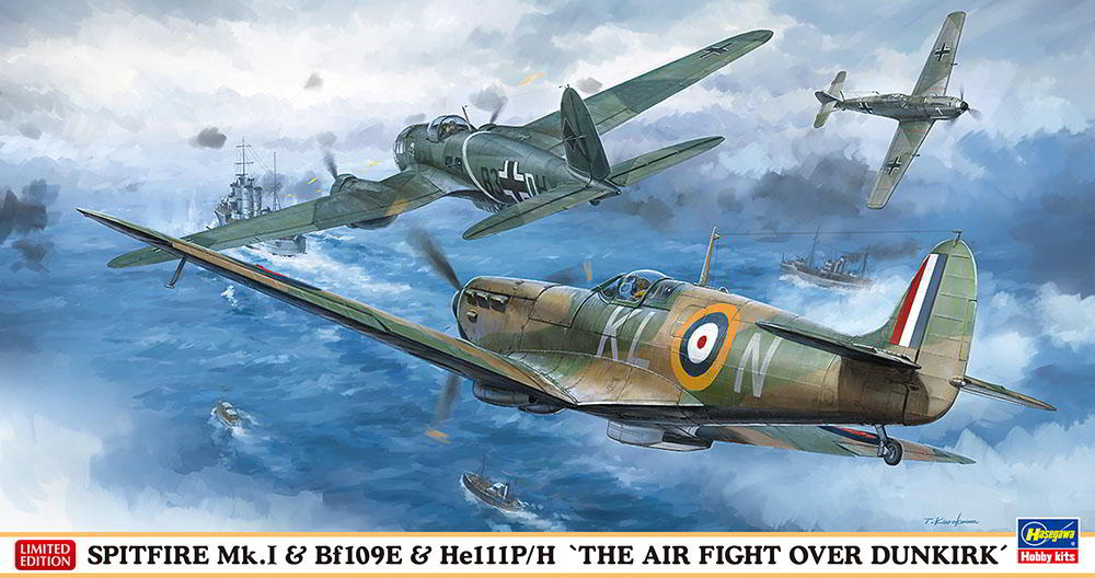 SPITFIRE Mk.I & Bf109E & He111P/H «THE AIR FIGHT OVER DUNKIRK» (Τρία κιτ στο κουτί), στην 1/72 (κωδ. 02270). Κυκλοφορία, εμπνευσμένη από την πρόσφατη πολεμική ταινία Dunkirk». Το σετ περιλαμβάνει τους εναέριους πρωταγωνιστές του έργου: Ένα SPITFIRE (με 28 κομμάτια), ένα Bf109E (με 36 κομμάτια) και ένα He111P/H (με 115 κομμάτια). Οι χαλκομανίες για τα κιτ περιλαμβάνουν: