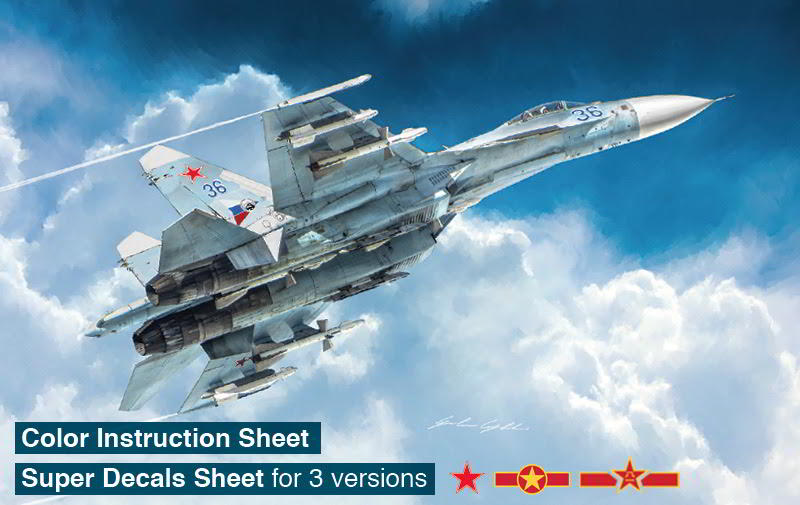 - 1413 SU-27 FLANKER στην 1/72, με έγχρωμο φυλλάδιο οδηγιών και χαλκομανίες για τρεις εκδόσεις. (Περισσότερα εδώ)