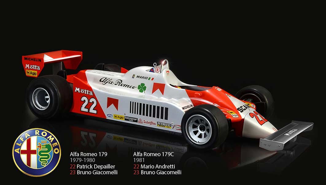 - 4704 ALFA ROMEO 179 – 179C στην 1/12. Νέα κυκλοφορία, από νέα καλούπια. Το κιτ παρέχει τις δύο επιλογές (179 ή 179C) του μονοθέσιου, αλλά και λειτουργική ανάρτηση και σύστημα διεύθυνσης. Επίσης δίνει Slick λάστιχα, ενώ το cowling είναι αφαιρούμενο για να φαίνεται η πλήρης εσωτερική λεπτομέρεια. Περισσότερα εδώ.