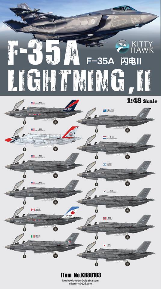 Οι άλλες δύο κυκλοφορίες αφορούν τις δύο εκδόσεις του F-35. Το κιτ του F-35A (KH80103), θα περιλαμβάνει χαλκομανίες για 11 αεροσκάφη, το ένα με επετειακό διάκοσμο.