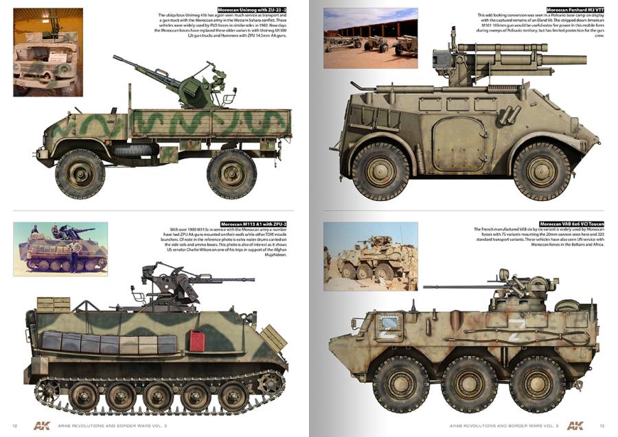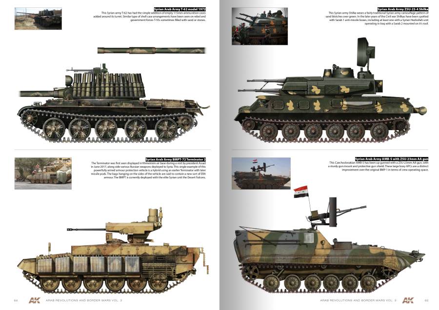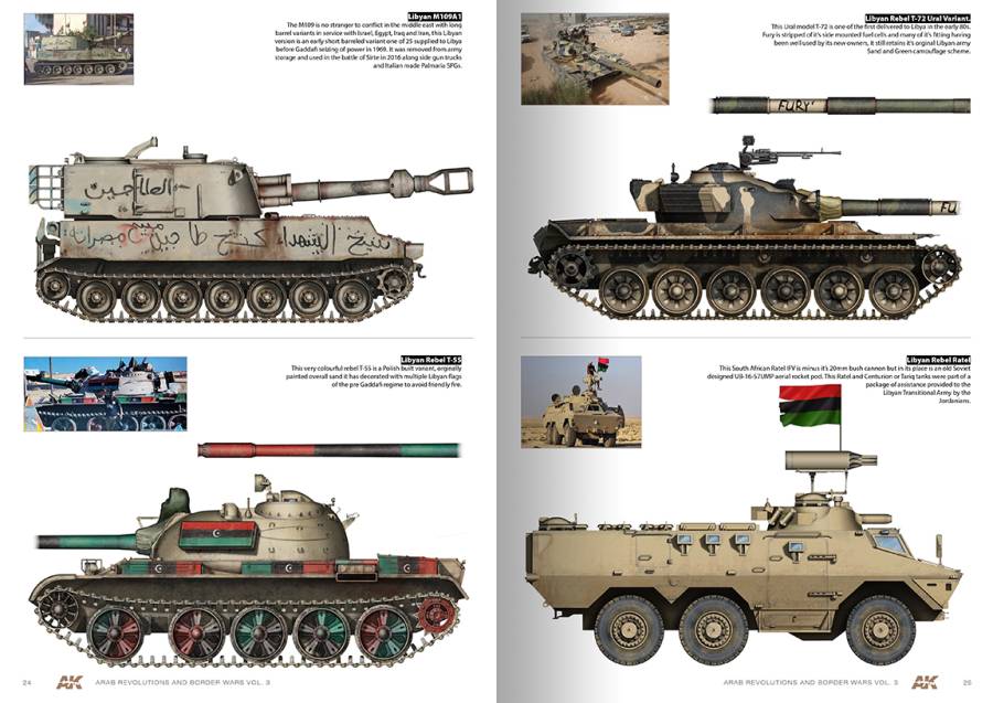 AK 286 ARAB REVOLUTIONS AND BORDER WARS VOL3. PROFILE GUIDE. Πρόκειται για τον τρίτο τόμο της σειράς οδηγών προφίλ με Αραβικών οχημάτων. Αυτή την φορά καλύπτονται τα οχήματα και τα άρματα που χρησιμοποιήθηκαν στην διαβόητη «Αραβική Άνοιξη» σε όλοι τον αραβικό χώρο.