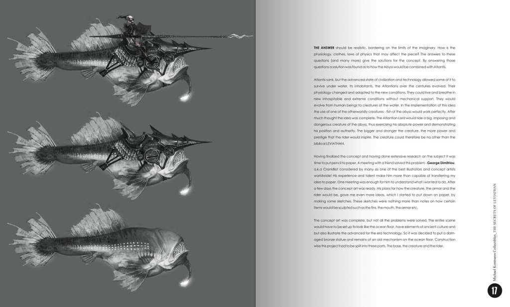 Πρόκειται για ένα βιβλίο 120 σελίδων, στα Αγγλικά, για την Τέχνη της φιγούρας υπό κλίμακα, γραμμένο και σχεδιασμένο από τον ίδιο τον Μιχάλη Κοντράρο και αφιερωμένο σε όλους τους φίλους της φιγούρας και ειδικότερα στους λάτρεις των έργων του, αλλά και σε όσους εκτιμούν τις φιγούρες φαντασίας. Η καλλιτεχνική δουλειά είναι φανερή σε κάθε σελίδα, με πρωτότυπο lay-out που αποκαλύπτει τα στάδια δημιουργίας του Λεβιάθαν, ένα έργο του Μιχάλη που έχει κερδίσει πολλά βραβεία. Η περιγραφή ξεκινά από την ιδέα και τη σύλληψη, προχωρώντας στην κατασκευή και το βάψιμο. To βιβλίο έχει τυπωθεί σε περιορισμένη έκδοση (Limited Edition) σε 2000 αντίτυπα παγκοσμίως.