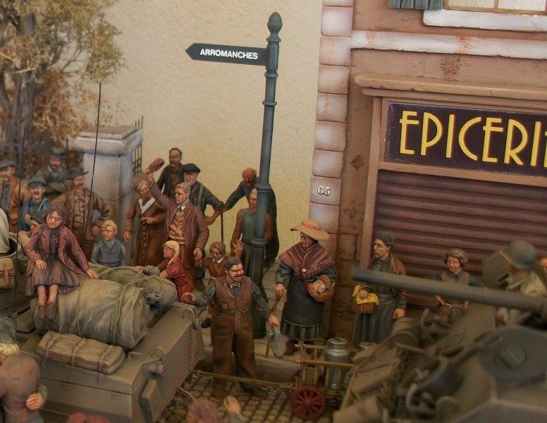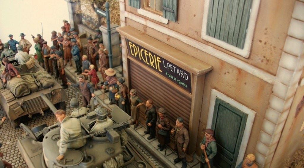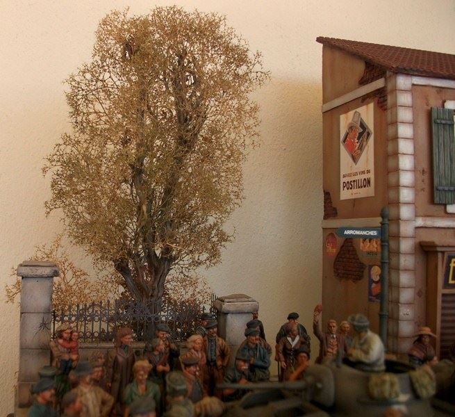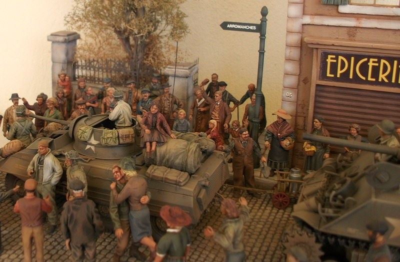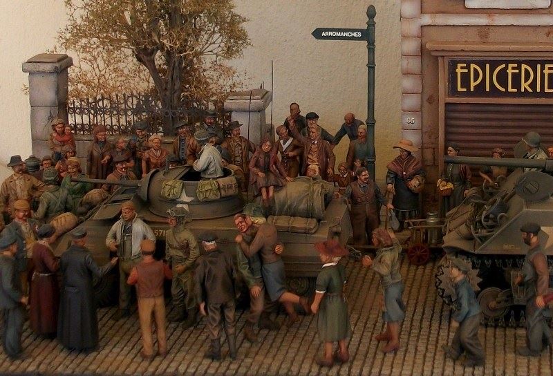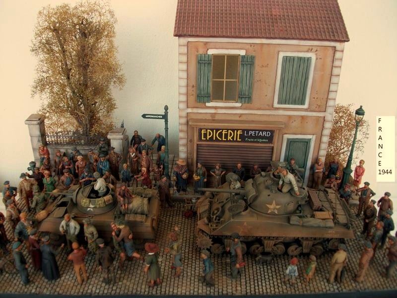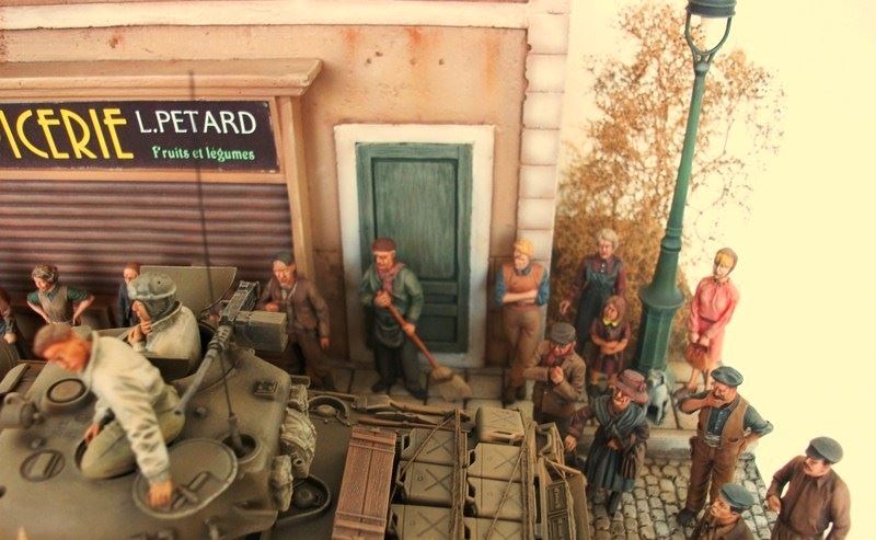 To συγκεκριμένο διόραμα τελείωσε πριν λιγες ημέρες με το τελείωμα 3 φιγούρων αν και ειχε ξεκινήσει πριν αρκετα χρονια ,αλλα για να μαζέψεις και να το συμπληρώσεις με φιγούρες πολίτες ηταν αρκετά δύσκολο να βρεθούν μιας και τοτε οι περισσότερες εταιρείες έβγαζαν μάχιμες φιγούρες ο δρομος και το πεζοδρόμιο ειναι καλουπαρισμενο με γυψο και χαραγμένο στο χερι ,το κτίριο είναι mk 35 ο τοίχος royal model ,το δεντρο ιδιοκατασκευη με κλαδια απο την heki ,τα 2 κιτ απο την tamiya και οι 80 φιγούρες απο εταιρείες ρητίνης, και οι 3 τελευταίες απο τη master box