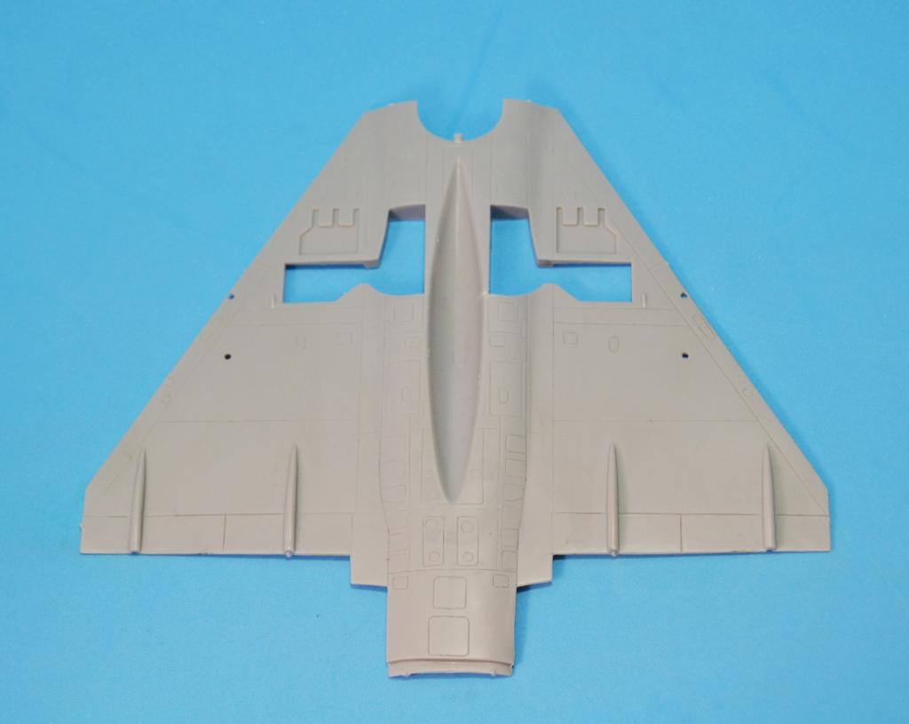 Στην αρχή ήθελα να το επαναχαράξω το κιτ της HELLER αλλά μετά σκέφτηκα ότι θα ήταν πολύ πιο ρεαλιστικό αν μπορούσα να φέρω τα πριστίνια στην επιφάνεια και να τα τονίσω. Είναι θέμα προτίμησης όμως, στα μελλοντικά μου σχέδια είναι να κατασκευάσω παράλληλα και τα δύο κιτ και να συγκρίνω. Οι εισαγωγές είναι «τυφλές» δεν υπάχει συνέχεια στο εσωτερικό όπου να φαίνονται οι ανεμιστήρες των κινητήρων. Οι εξαγωγές έχουν αρκετό βάθος και καλή ανάγλυφη λεπτομέρεια. Αερόφρενα μπορούν να κολληθούν και σε ανοιχτή θέση. Σύστημα προσγείωσης είναι καλό για τη κλίμακα, κλασσικά η προσθήκη καλωδίωσης απο λεπτό σύρμα είναι αναγκαία. Οι φωλεές έχουν αρκετό βάθος και ανάγλυφη λεπτομέρεια.