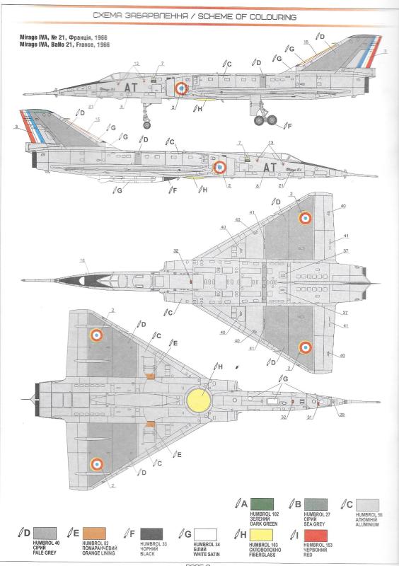 Η έκδοση που αναγράφεται στο κουτί είναι του στρατηγικού βομβαρδιστικού. Εκτός απο τη κοιλιακή πυρηνική βόμβα δινεται ακόμα και το φωτοαναγνωριστικό ατρακτίδιο με διάφανα τμήματα στις θέσεις των καμερών καθώς και δύο εξωτερικές δεξαμενές καυσίμων. Δυστυχώς, δεν παρέχεται ο πύραυλος ASMP που εξόπλισε τα Mirage IV απο το 1980 όταν βάφτηκαν με τη γριζοπράσινη παραλλαγή.
