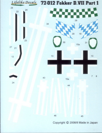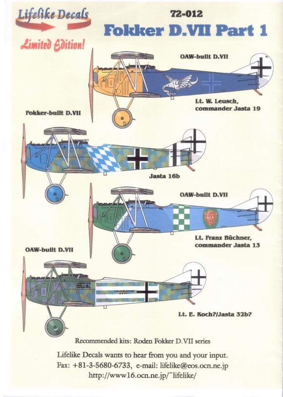 Η Lifelike Decals κυκλοφορεί καρτέλα με χαλκομανίες για το Fokker D.VII στην 1/72 και στην 1/48.